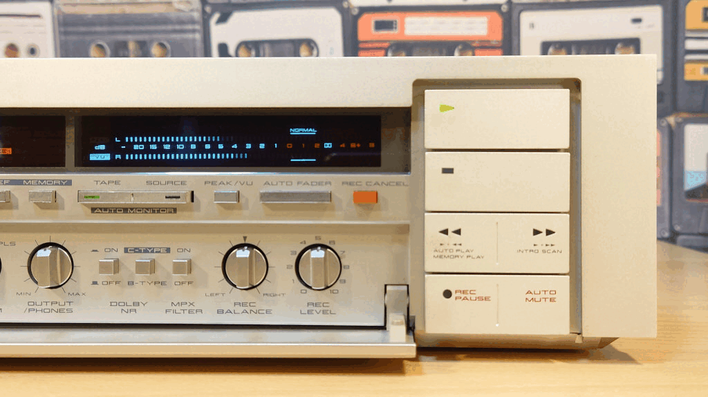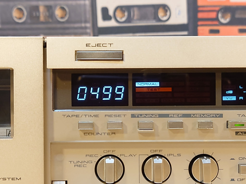 レベルメーターは、ピークレベルとVUを切り替えることができるのもAKAIのカセットデッキの特徴です。薄型ボディになってディスプレイが小型になった分、メーターが小さくなって少し見づらくなってしまったことが惜しいところ。